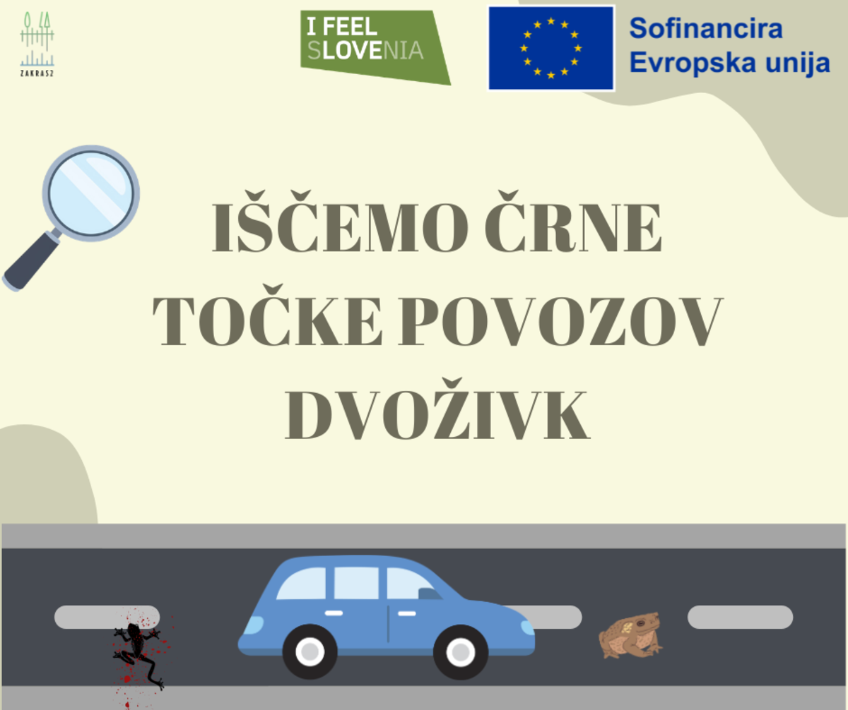 V sklopu projekta ZA KRAS 2 iščemo črne točke na naših cestah - to so lokacije, kjer je ob večerih/ponoči veliko število povoženih dvoživk (krastače, žabe, pupki, močeradi..). Pri tem potrebujemo vašo pomoč, saj več ljudi več opazi.